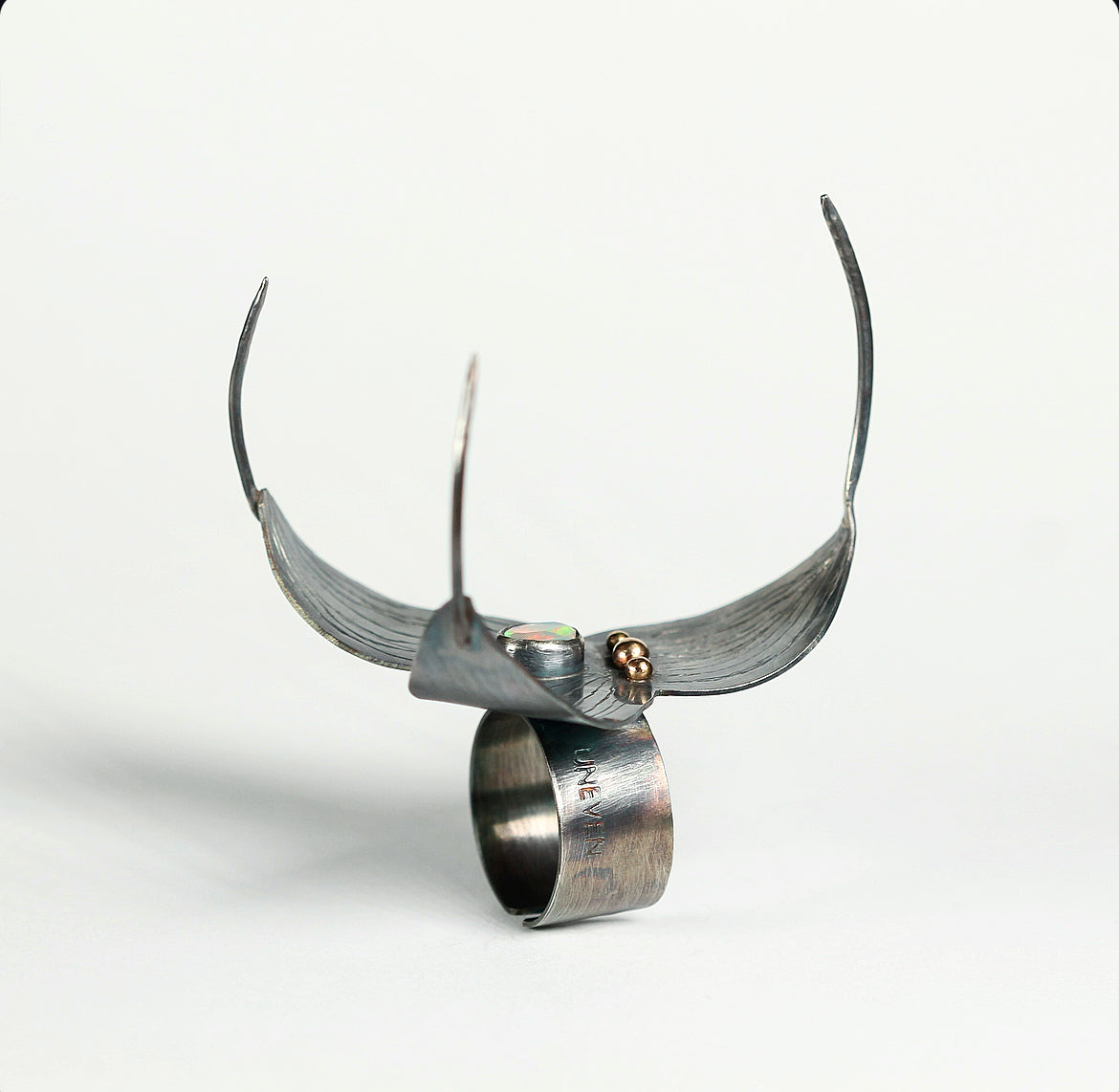 The ring is beautifully set in 925 oxidized silver, highlighting the intricate details and creating a striking contrast that enhances the opal's vibrant colors. This statement piece is not just an accessory; it's a conversation starter—perfect for elevating any outfit or occasion.